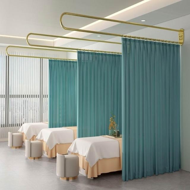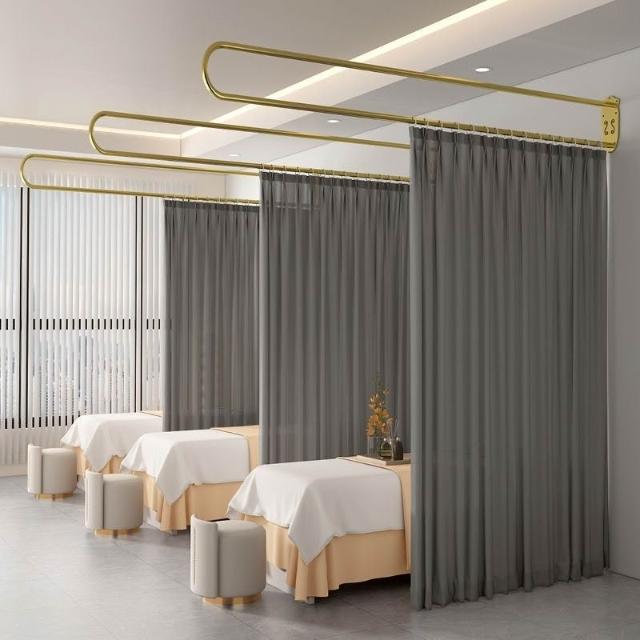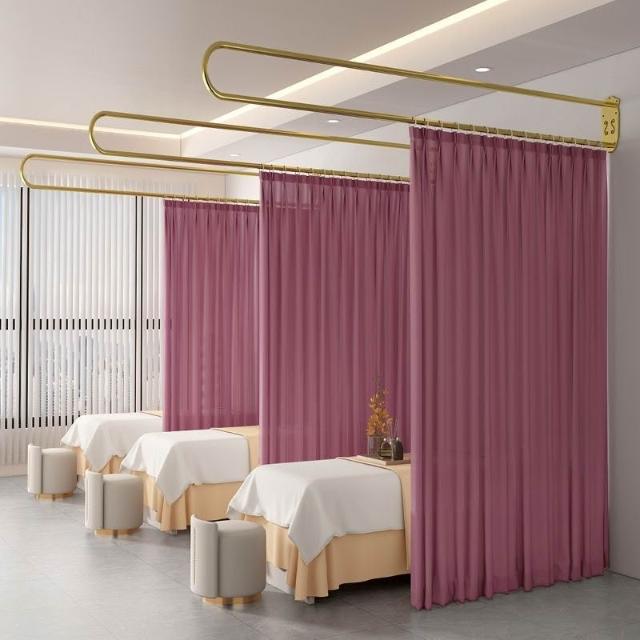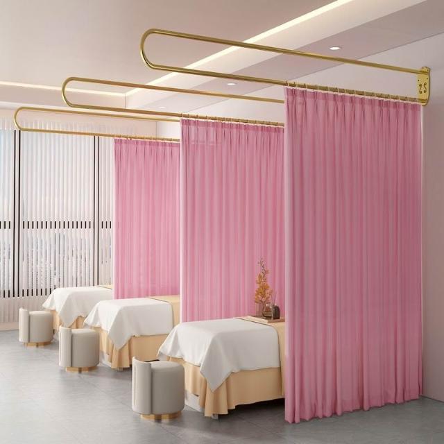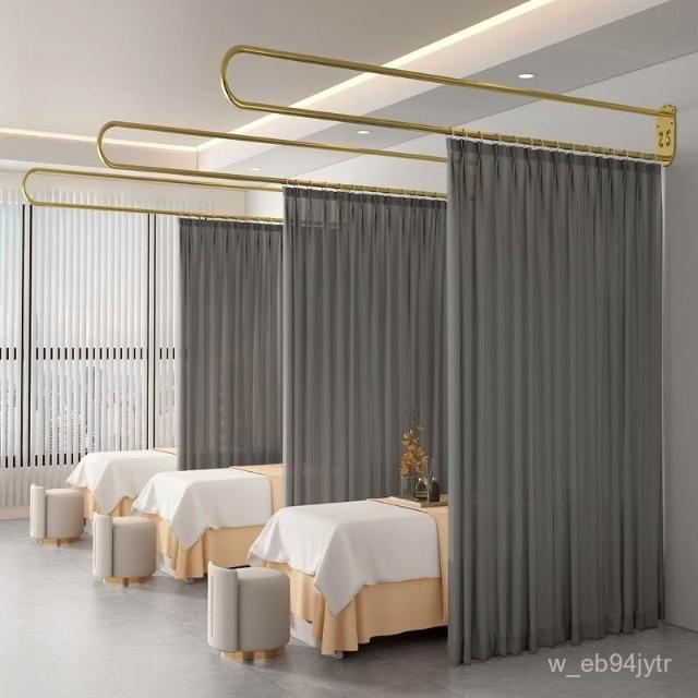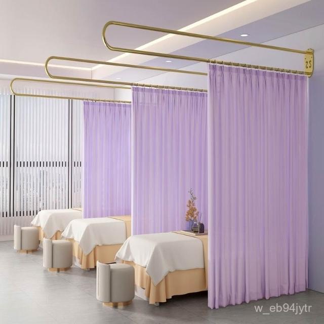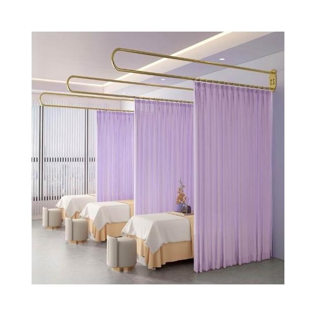 開發票 【多色選搭美容院 鐵藝養生理療透光窗簾 支架佈料 天絲隔斷 專用U桿 簡易隔簾
