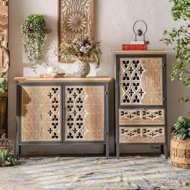隱蔽式鞋櫃 櫃子 美式茶櫥 櫥櫃 鄉村復古鐵藝玄關櫃 工業風餐邊櫃 茶水櫃 民宿客廳組閤儲物櫃 置物櫃 矮櫃高櫃抽屜櫃