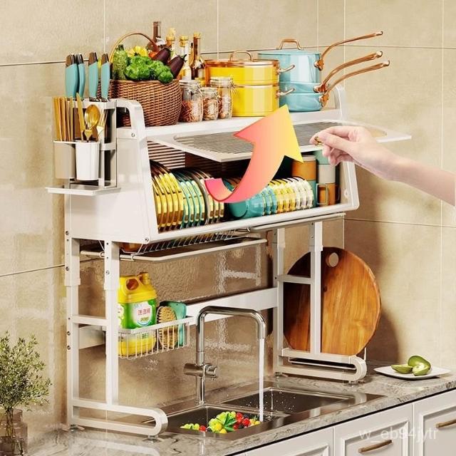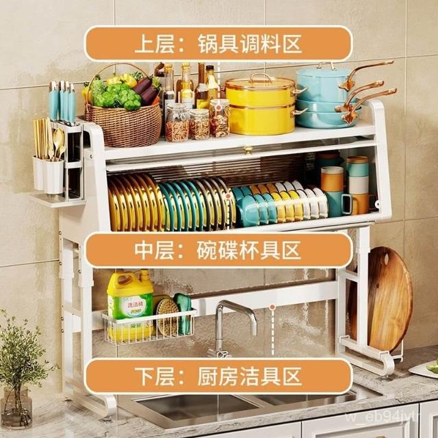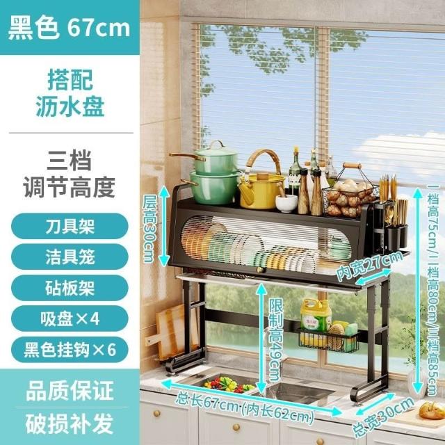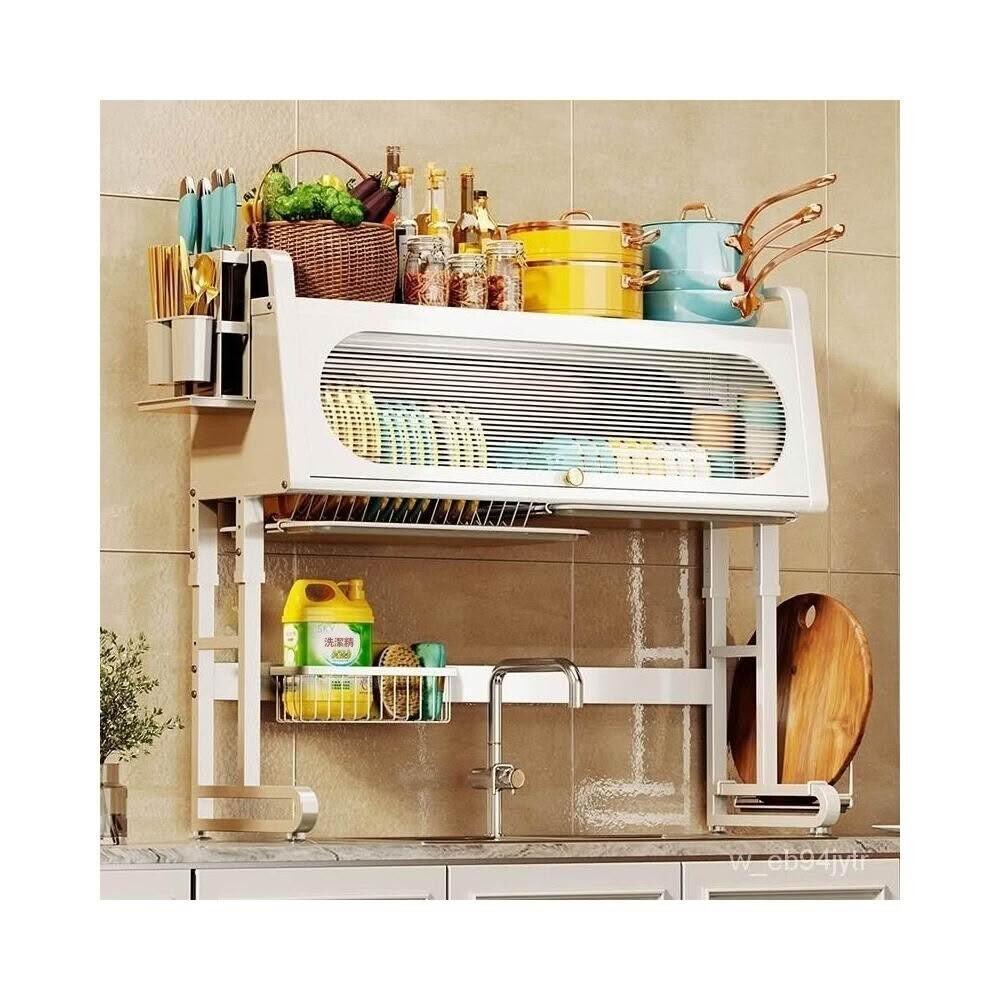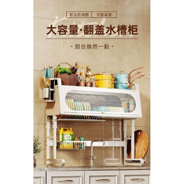 多功能收納架耐重廚房置物架帶門 流理臺瀝水架 水槽瀝水架 廚房鐵架餐具盤架盤子收納層架醬料架調味瓶收納架 濾水架櫥櫃