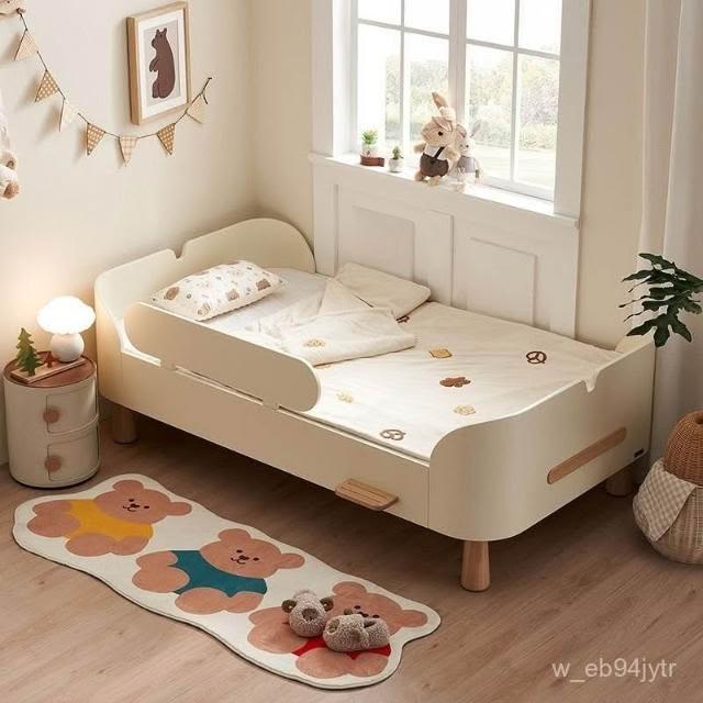 可開發票 小島床 闆式床 奶油風 臥室家具 青少年床實木床腳 單人床 拚接床 兒童床 加寬床 帶護