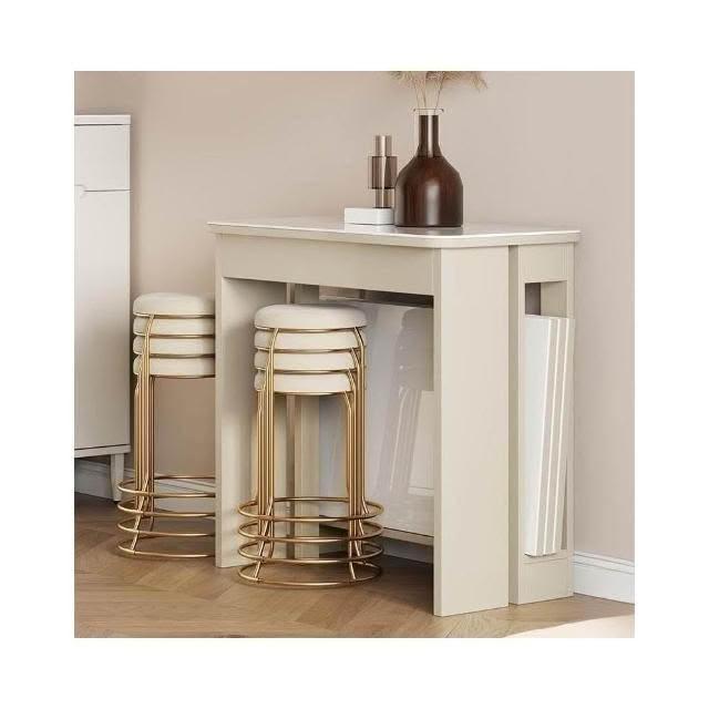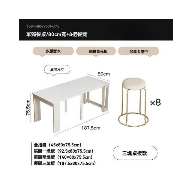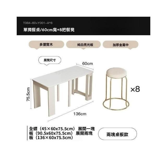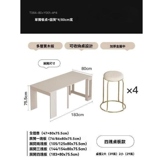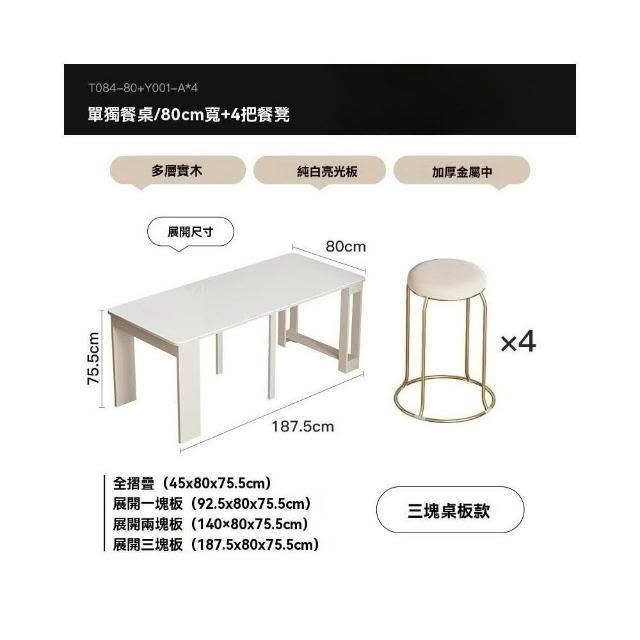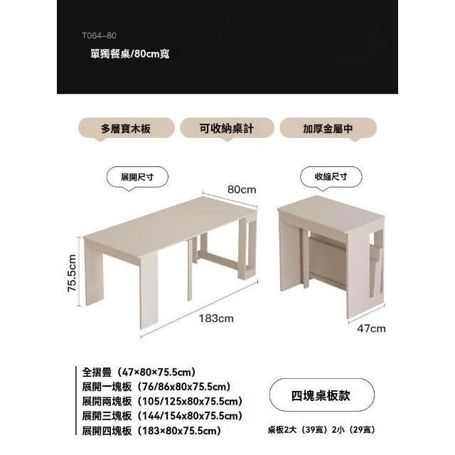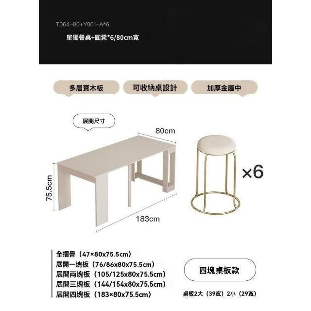奶油風實木折疊桌 餐桌 可伸縮桌子 家用飯桌 小戶型餐椅組合 長方形桌 桌子