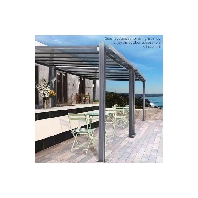 室外庭院走廊樓頂組裝防水隔熱防雨遮陽蓬加粗鋁閤金停車棚陽光棚 涼亭 車棚 雨棚 遮陽棚