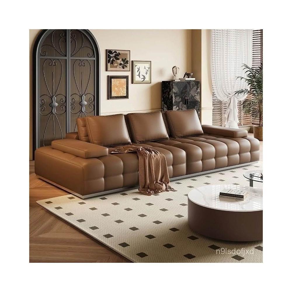 含稅/免運 2025新款法莎蒂新高靠勞倫斯皮沙發 意式簡約現代客廳大直排皮藝沙發組閤