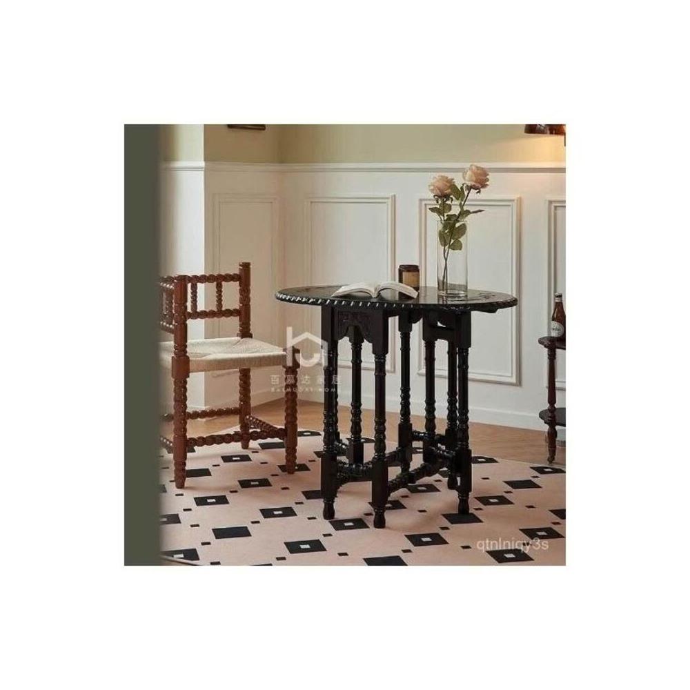 限時優惠 法式中古折疊實木餐桌美式複古MCM小戶型客廳家用橢圓形咖啡圓桌 AXD8