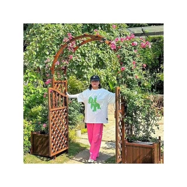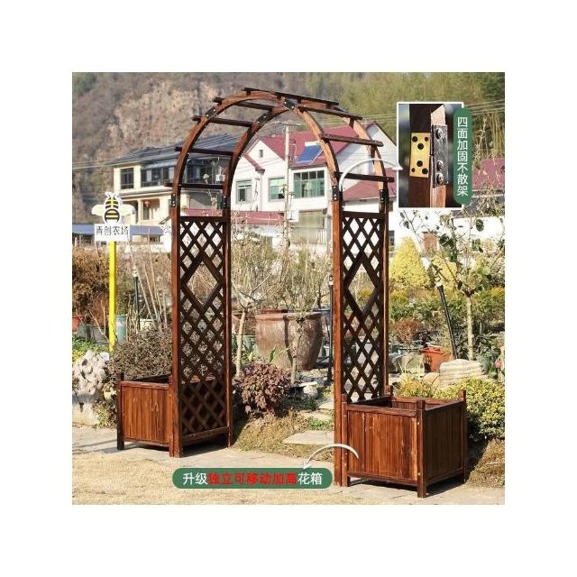 花架 花盆架 盆栽架 戶外庭院花園門拱門花架碳化防腐木葡萄架陽臺實木質拱門爬藤架子