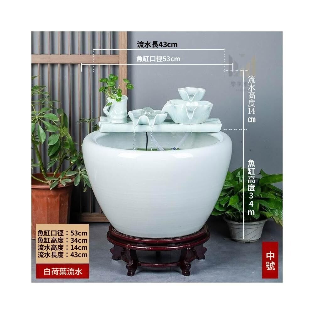 大型白色陶瓷流水魚缸 水缸 陽臺造景水循環辦公室客廳古法養魚大缸 白色魚缸 風水缸