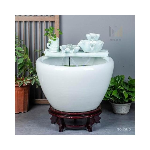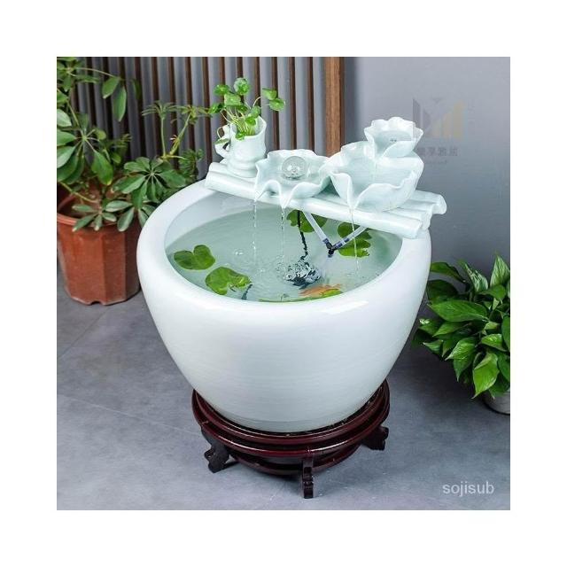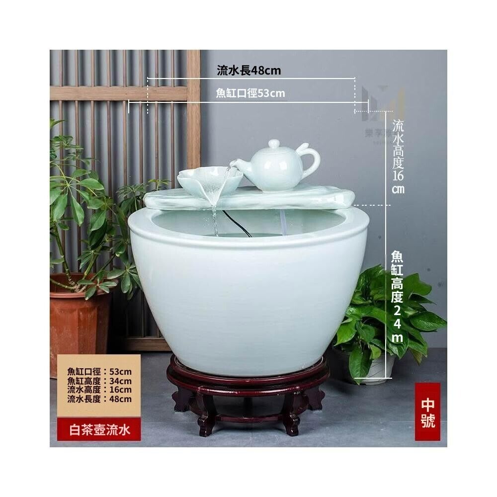 大型白色陶瓷流水魚缸 水缸 陽臺造景水循環辦公室客廳古法養魚大缸 白色魚缸 風水缸