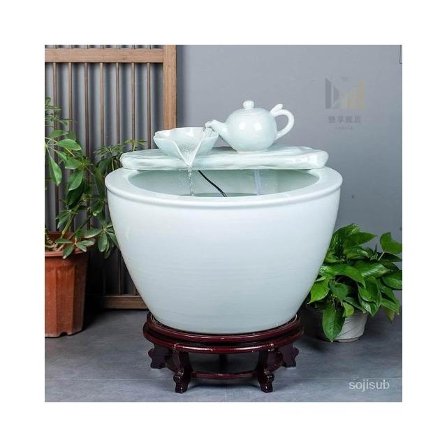 大型白色陶瓷流水魚缸 水缸 陽臺造景水循環辦公室客廳古法養魚大缸 白色魚缸 風水缸