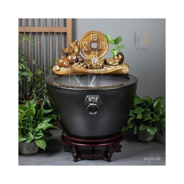 庭院風水缸 陶瓷魚缸 循環流水古法養魚生態造景大型水缸 落地魚缸 庭院複古大缸