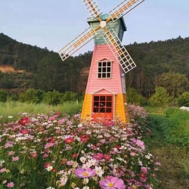 荷蘭大風車 景觀大型戶外防腐木風車 定做 花海擺件 創意木制田園風車