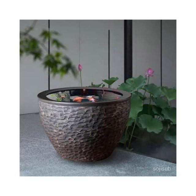 庭院大水缸 景德鎮陶瓷大缸 錦鯉金魚缸 仿石頭平口特大號荷花睡蓮缸