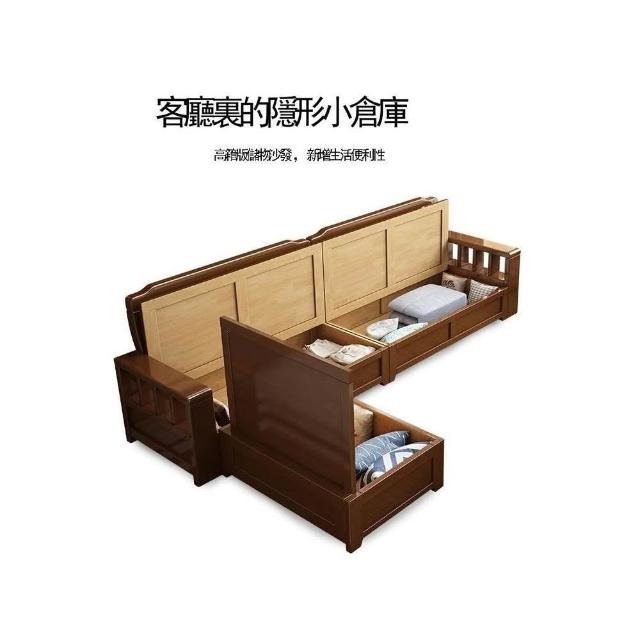 現代新中式客廳實木沙發組合木質冬夏兩用小戶型轉角儲物木沙發