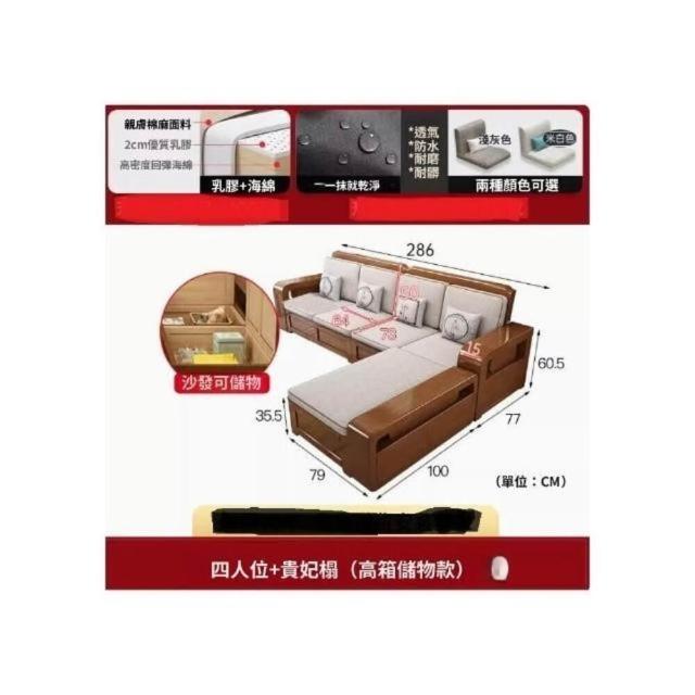 全實木沙發组合客廳冬夏兩用現代簡約高箱儲物小户型可拆洗布藝木質家具