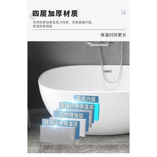 廠家直銷 亞剋力民宿酒店浴缸獨立式家用小鵝蛋水滴一體式浴缸