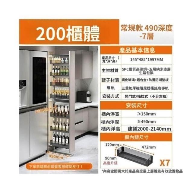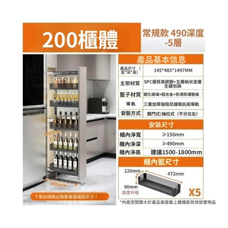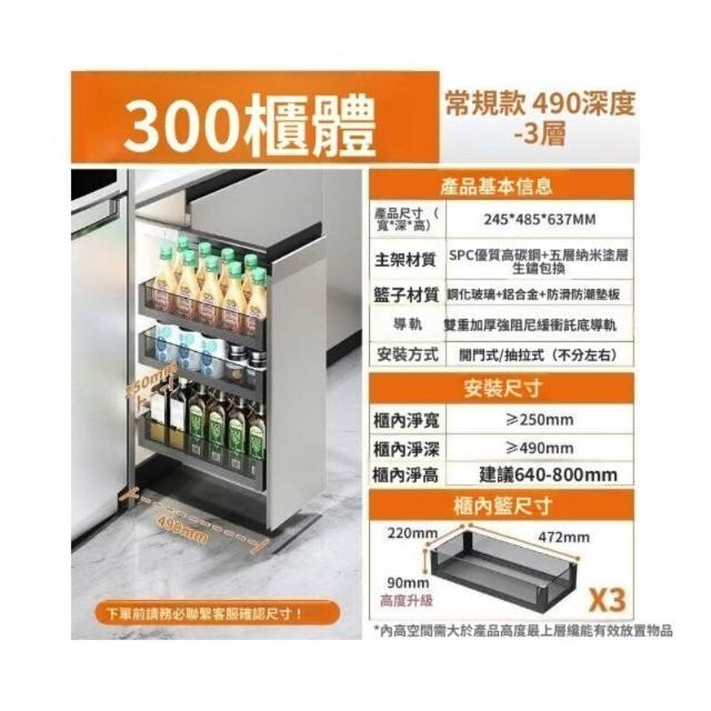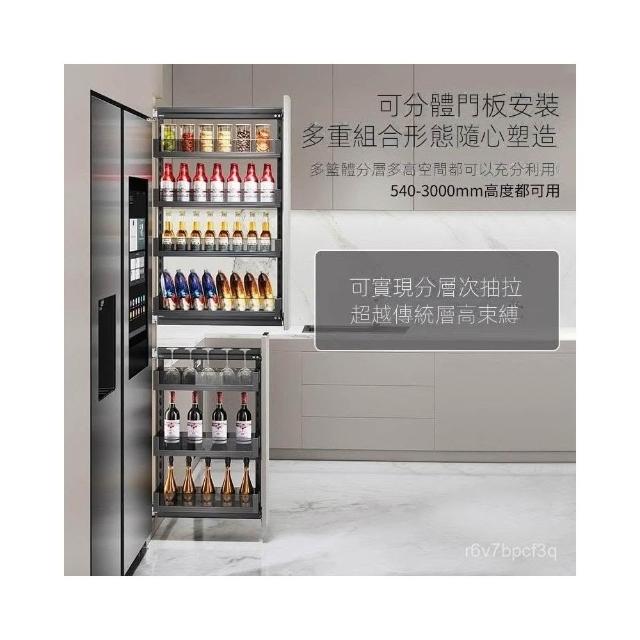 廚房置物架 廚房櫥櫃大怪物拉籃玻璃高深抽屜式側拉多層側裝冰箱極窄拉籃超窄 天地軌 廚房拉籃 收納架 高櫃 側拉籃 收納櫃