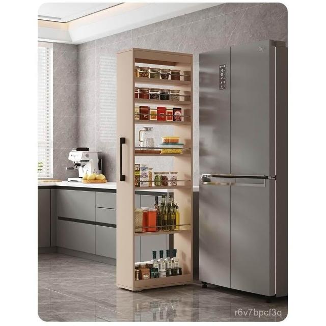 實木夾縫櫃廚房抽拉式夾縫收納櫃冰箱縫隙櫃門後大容量側拉窄邊櫃