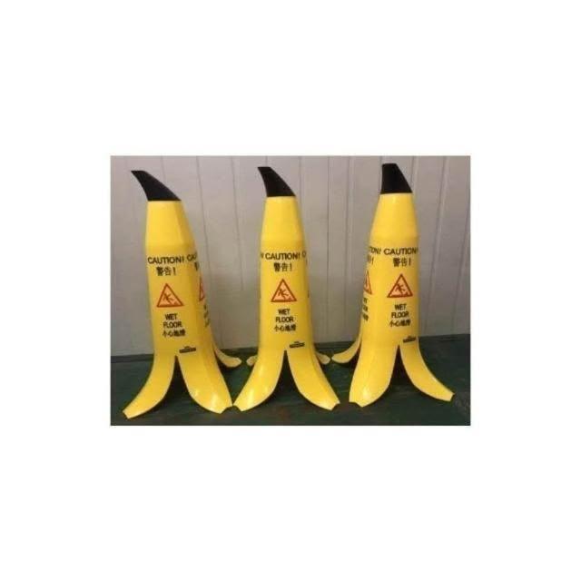 創意 香蕉造型 中英文版 小心地滑 告示牌 警示牌 三角錐 路錐 廁所 公廁 店麵 路滑 餐廳