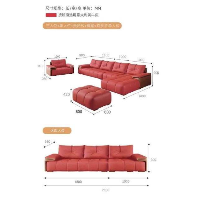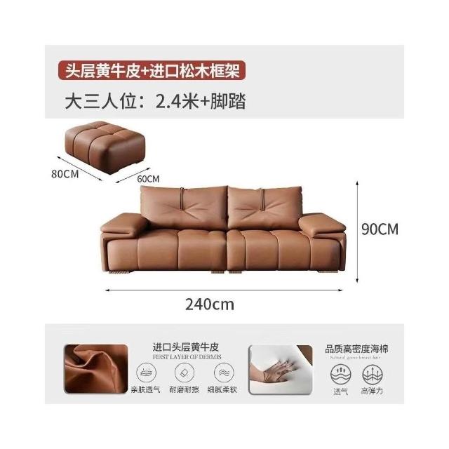 意式北歐頭層牛皮沙發 真皮沙發 小戶型沙發 直排沙發 廠傢現代客廳左右貴妃大小戶型