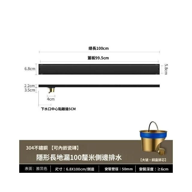 黑色隱形長條地漏 防臭大排量 衛生間 淋浴房長方形鑲磚中側排隱藏式