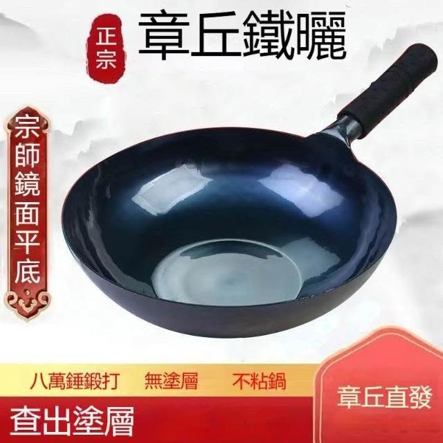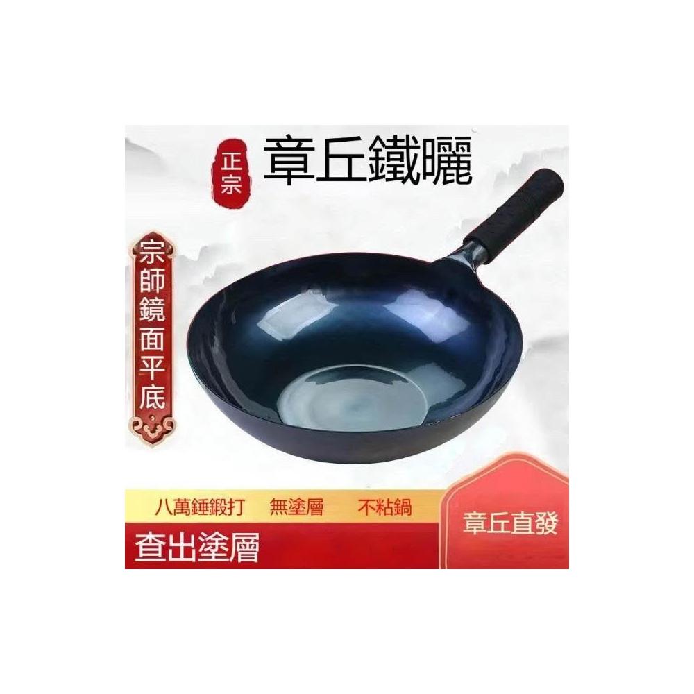 章丘鐵鍋正宗黑鍋純手工 炒鍋 不沾鍋 深煎鍋 無塗層圓底鍋炒勺炒菜鍋 鍛打傳統老式圓底炒鍋不粘鍋傢用無塗層