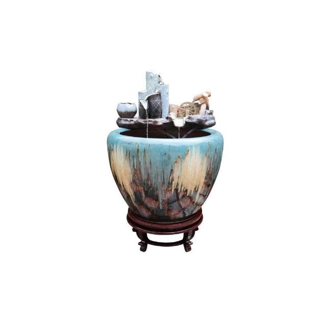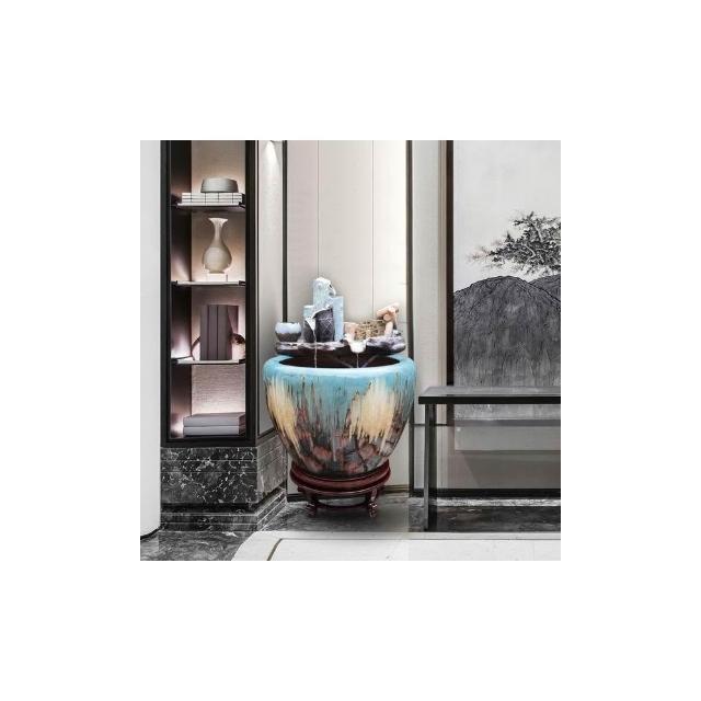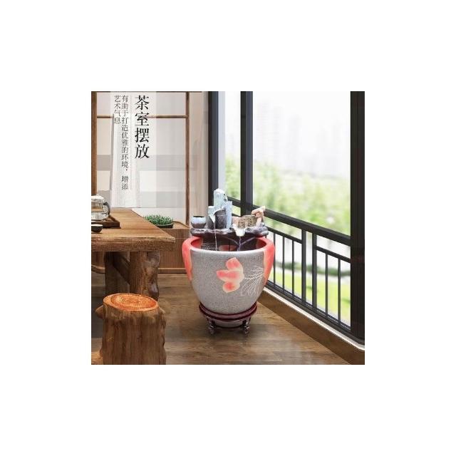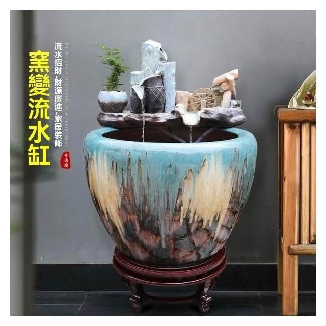 熱銷 景德鎮 陶瓷 魚缸 客廳流水瀑布 風水輪擺件 自循環水缸家用造景養魚缸