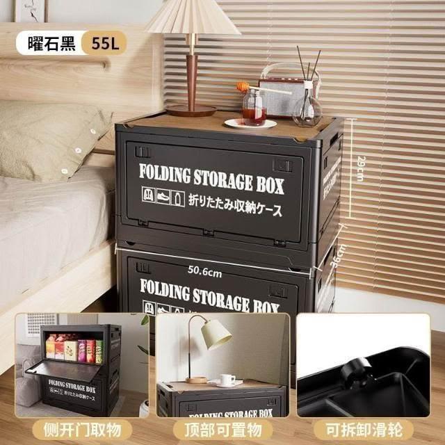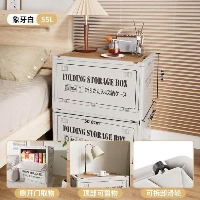 免運附發票 大容量可折疊收納箱簡約露營工業風塑料折疊箱收納櫃床邊簡易置物 收納箱 折疊收納櫃 床頭櫃 玩具衣物儲物櫃