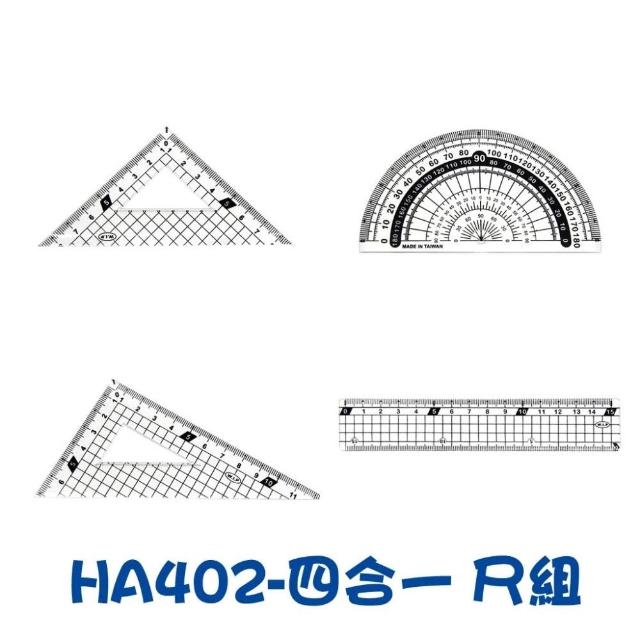 尺組 4件組 附盒 直尺 三角板 量角器 等腰 攜帶收納都方便 HA-402 數學 測量 算數 定規組