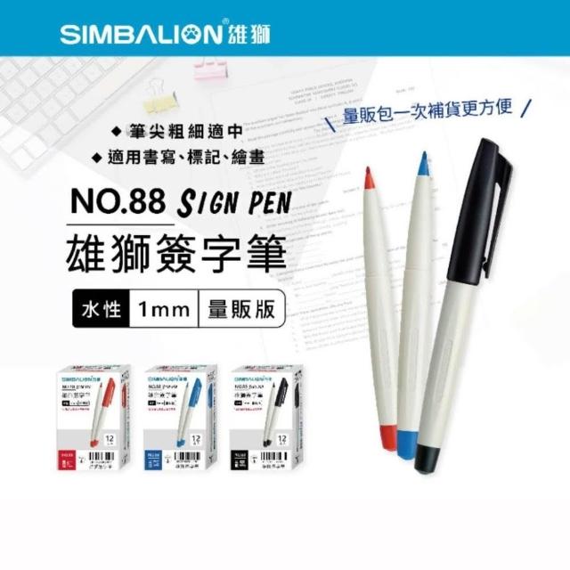 SIMBALION 雄獅文具簽字筆 量販裝 雄獅 88-簽字筆 簽名筆 改作業 水性1.0 簽到 Lion 88 12支入