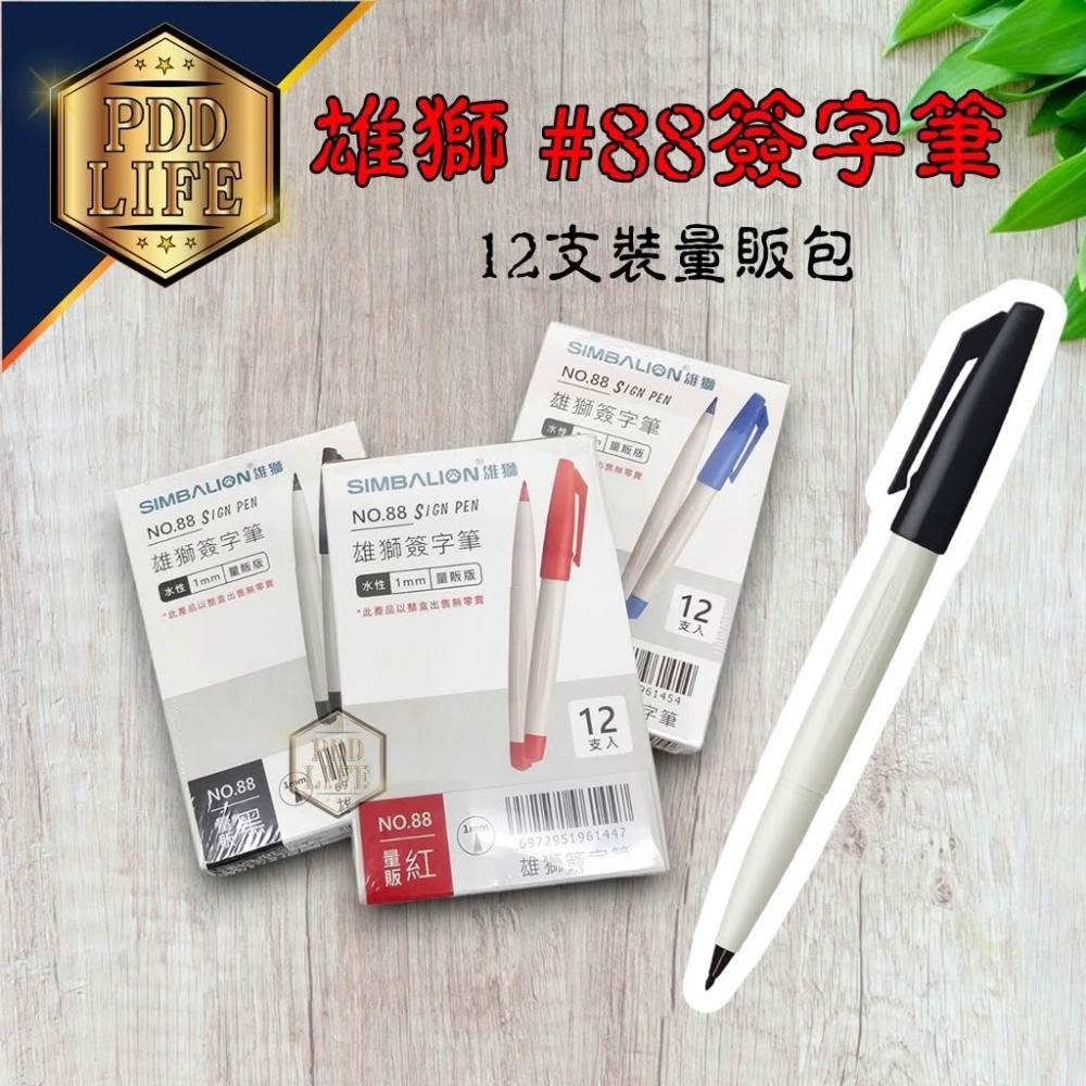 SIMBALION 雄獅文具簽字筆 量販裝 雄獅 88-簽字筆 簽名筆 改作業 水性1.0 簽到 Lion 88 12支入