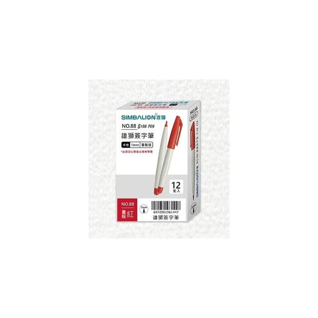 SIMBALION 雄獅文具簽字筆 量販裝 雄獅 88-簽字筆 簽名筆 改作業 水性1.0 簽到 Lion 88 12支入