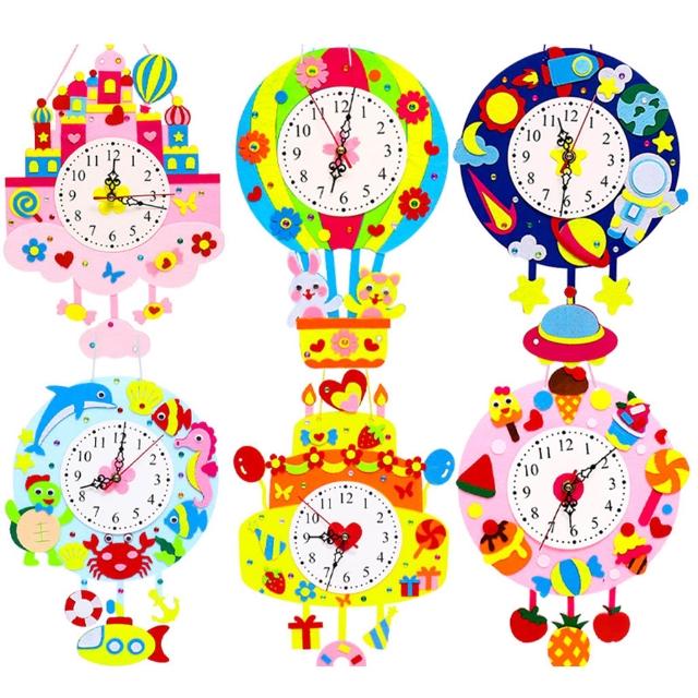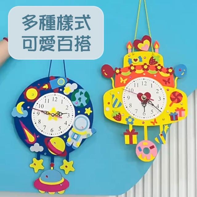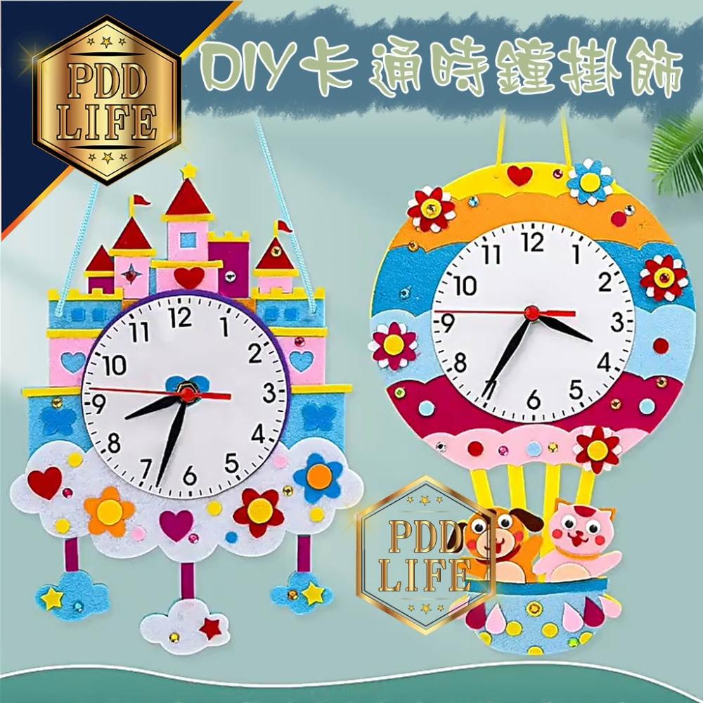 台灣現貨 親子手作DIY 創意掛鐘 不織布免裁剪 趣味布藝掛鐘 材料包 創意 水果糖果熱氣球海洋星空 掛鐘