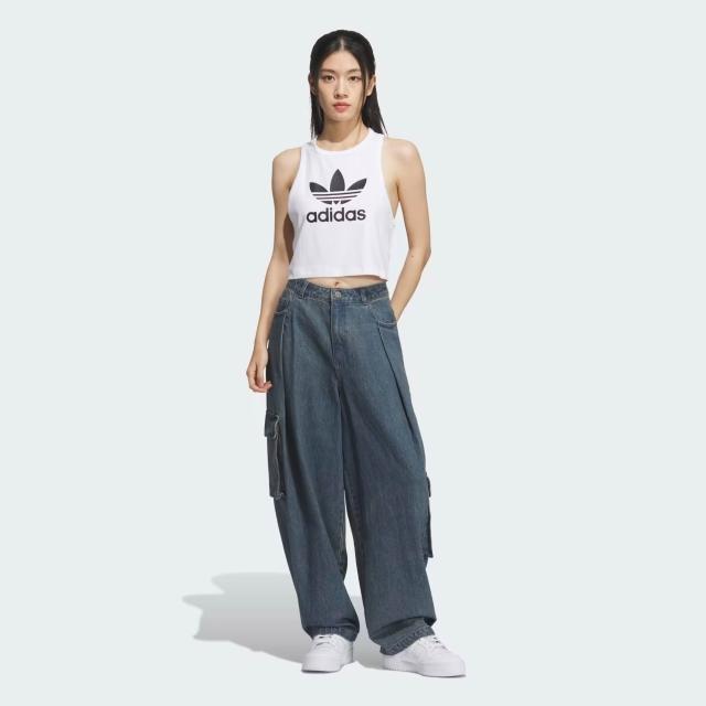 adidas 愛迪達[Siou's]DENIM CARGO 軟單寧 刷舊藍 不對稱口袋 工裝牛仔褲 彎刀褲-KC5813