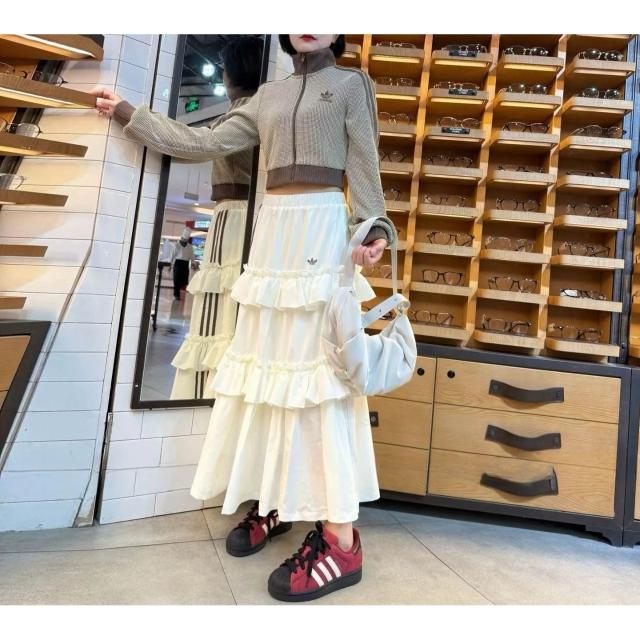 adidas 愛迪達[Siou's]Originals 米白咖 蛋糕裙 可愛搭配 多種風格 蛋糕長裙-KQ6506