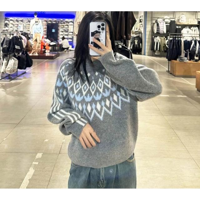 adidas 愛迪達[Siou's]FAIR ISLE 冰冷灰 費爾島緹花 圓領厚針織上衣-KS5964