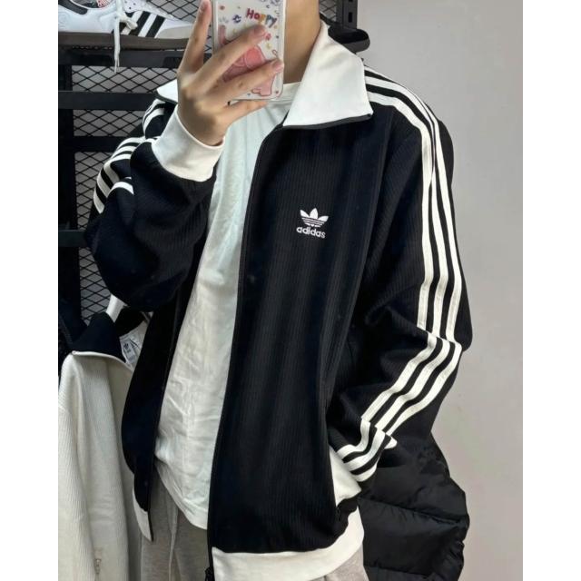 adidas 愛迪達[Siou's]Originals 黑色 情侶款 立領華夫格 基本款外套-JW0110