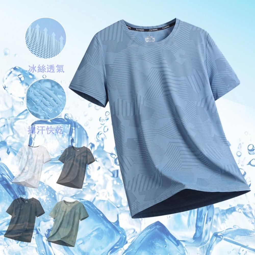 短袖上衣男夏季冰絲涼感衣吸濕排汗速乾透氣冰涼運動上衣休閒網眼排汗衫彈性圓領t恤寬鬆男生短袖運動衫速乾涼感跑步健身寬鬆衣服