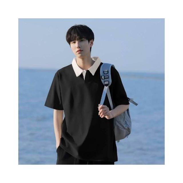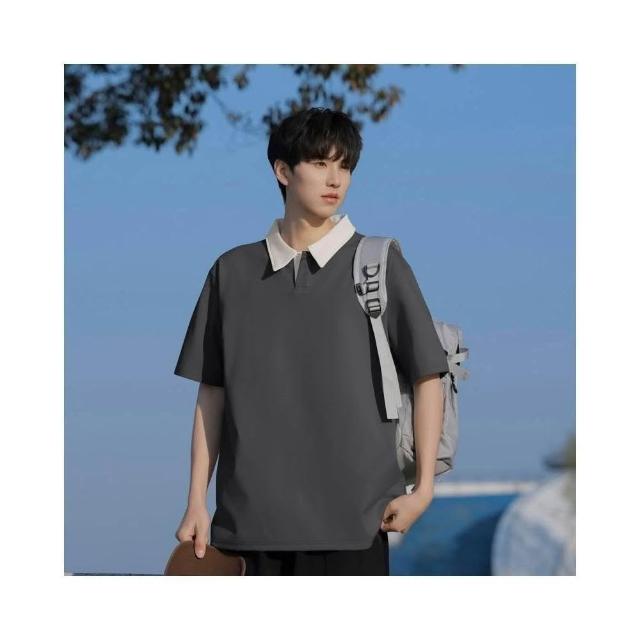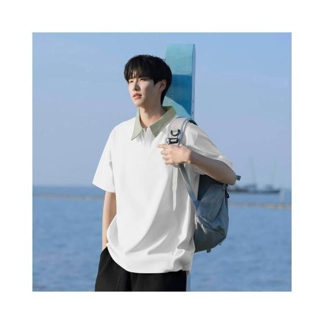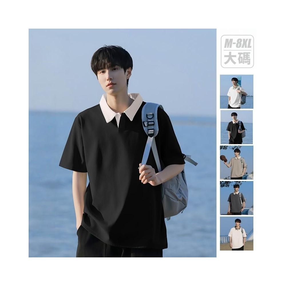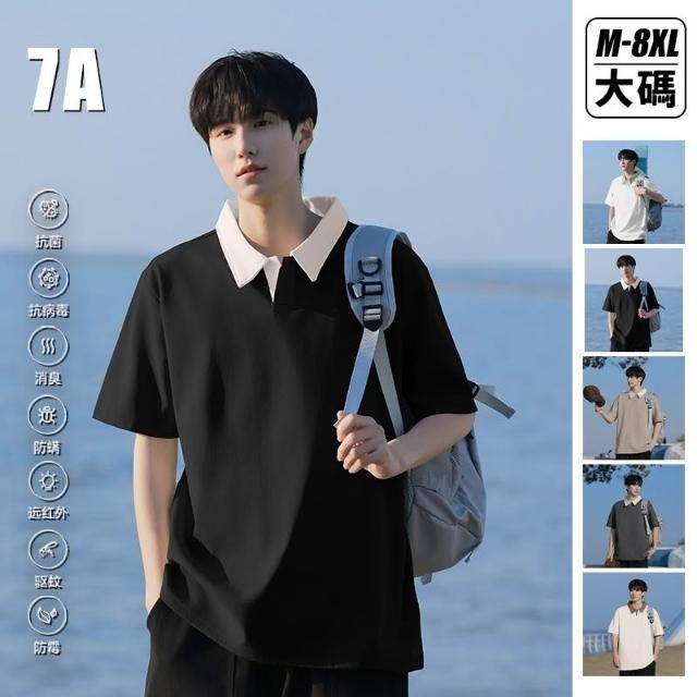 Zycx 大尺碼7A抗菌polo衫男短袖翻領POLO衫韓系撞色上衣夏季寬鬆上衣男生短袖大學T休閒有領上衣polo短袖
