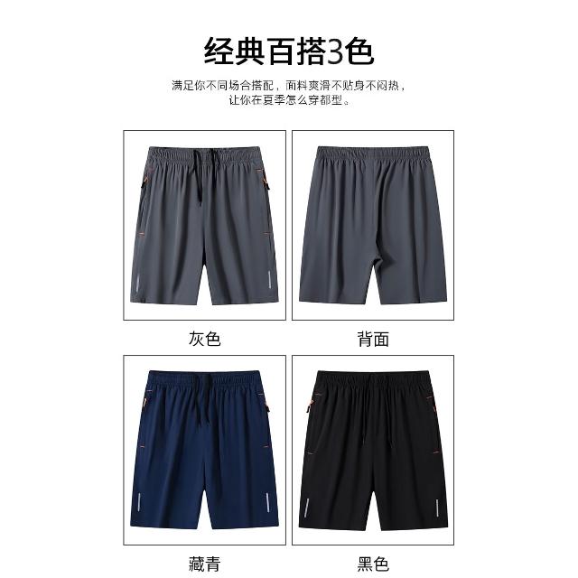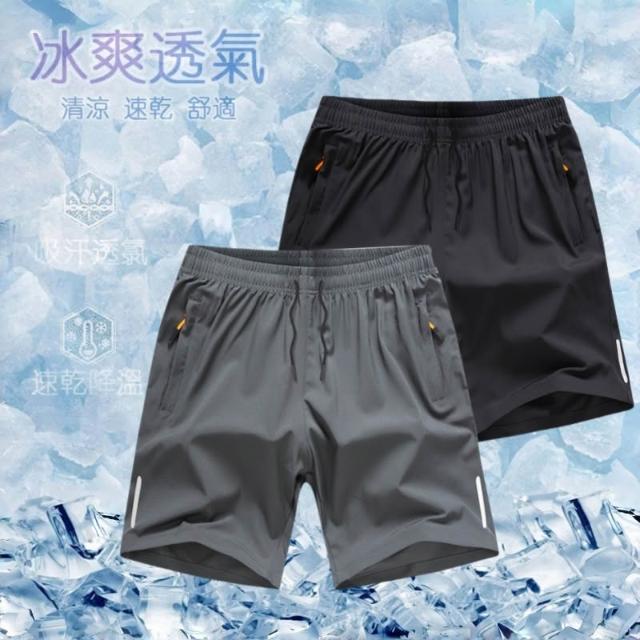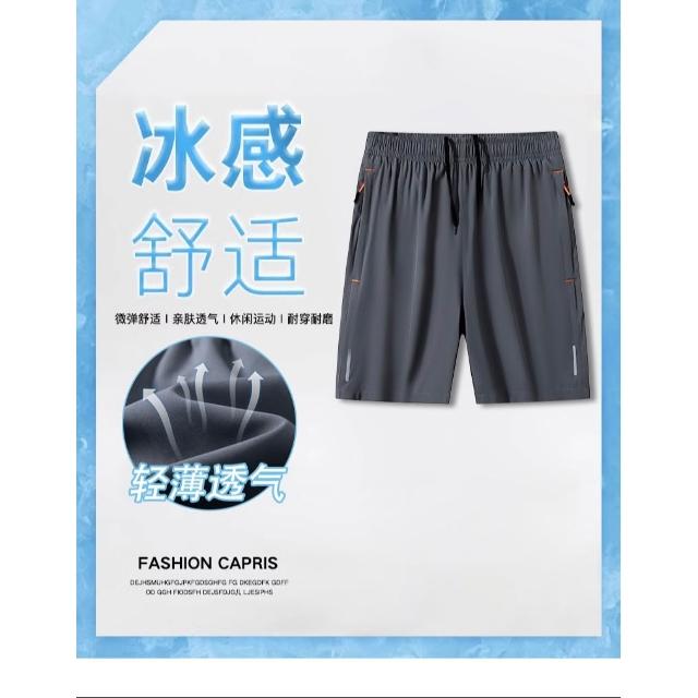 Zycx 運動短褲男生短褲冰絲五分褲涼感短褲短休閒寬鬆短褲抽繩鬆緊短褲輕薄透氣短褲膝上短褲彈力短褲五分寬褲男吸濕排汗短褲