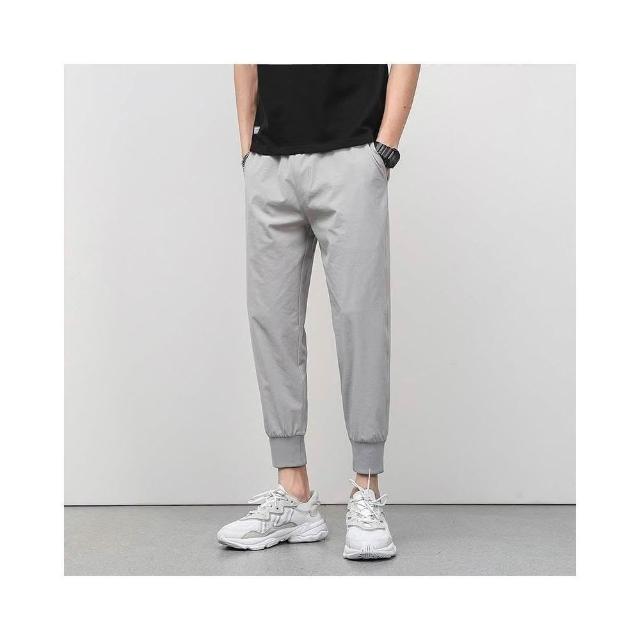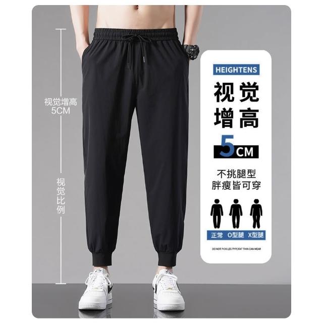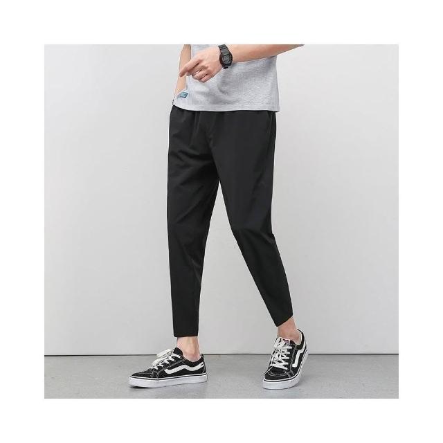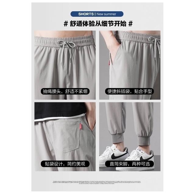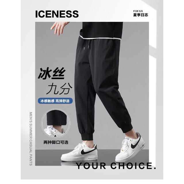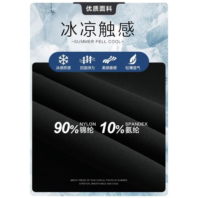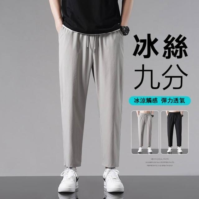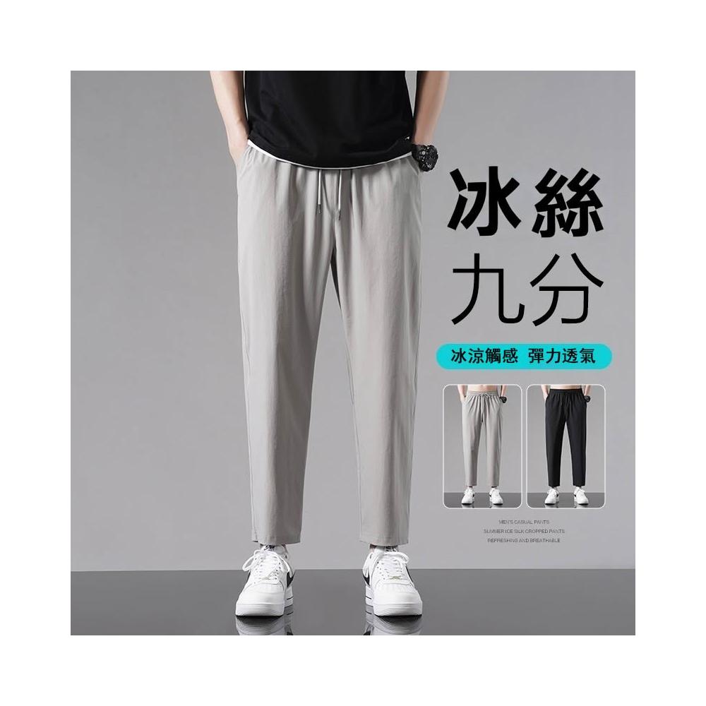 台灣出貨冰絲九分褲男休閒彈力長褲夏季涼感長褲顯高顯瘦長褲男生9分褲冰絲透氣長褲涼感寬褲九分褲子冰涼褲通勤長褲男褲