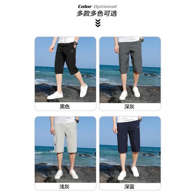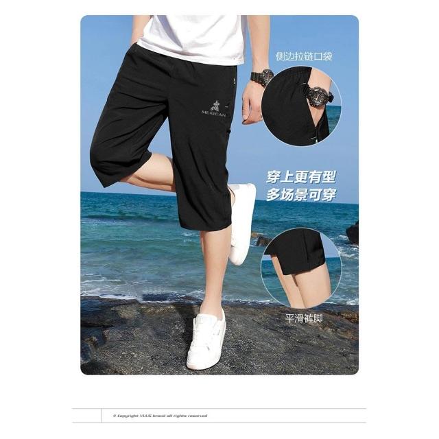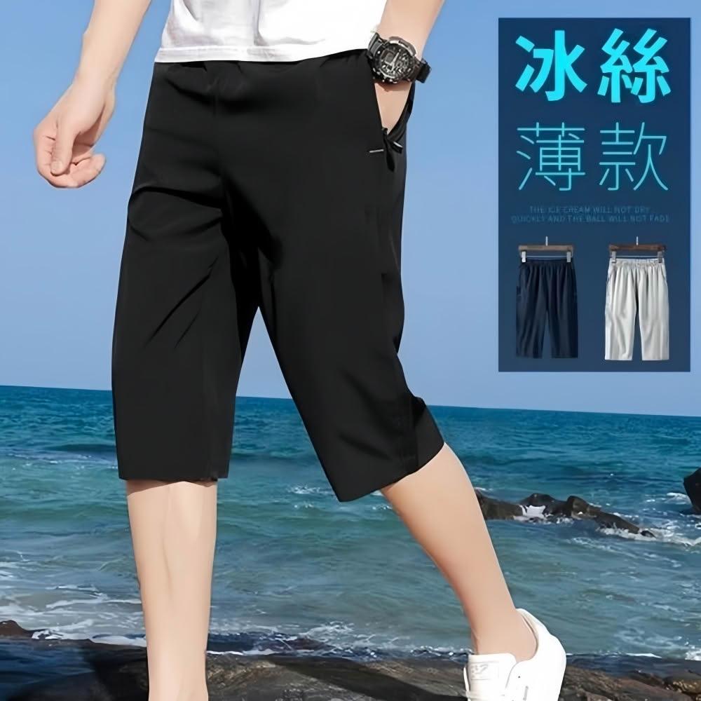 Zycx 大尺碼七分褲男冰絲七分褲夏季七分短褲涼感透氣短褲男生7分褲子休閒運動七分褲涼感七分褲七分寬褲運動短褲涼感褲男
