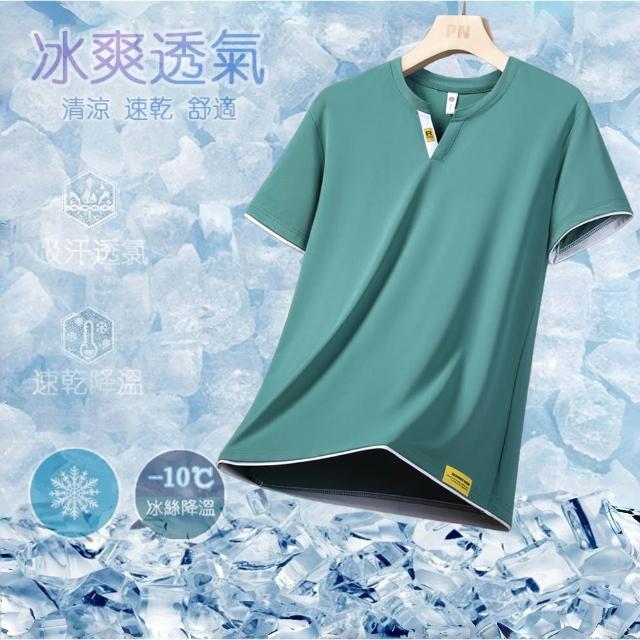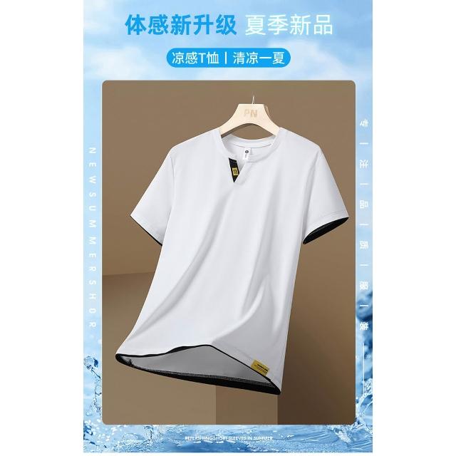 短袖t恤男運動上衣大尺碼吸濕排汗衣夏季冰絲涼感休閒v領上衣輕薄彈力t恤排汗速乾男涼感短袖透氣冰涼衣短袖夏天跑步休閒上衣男
