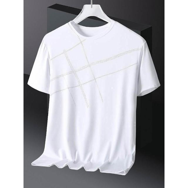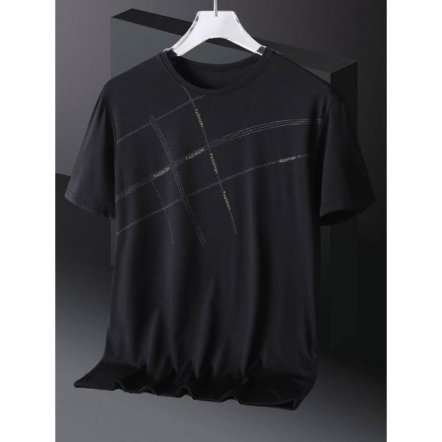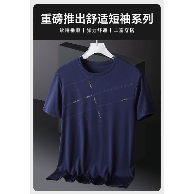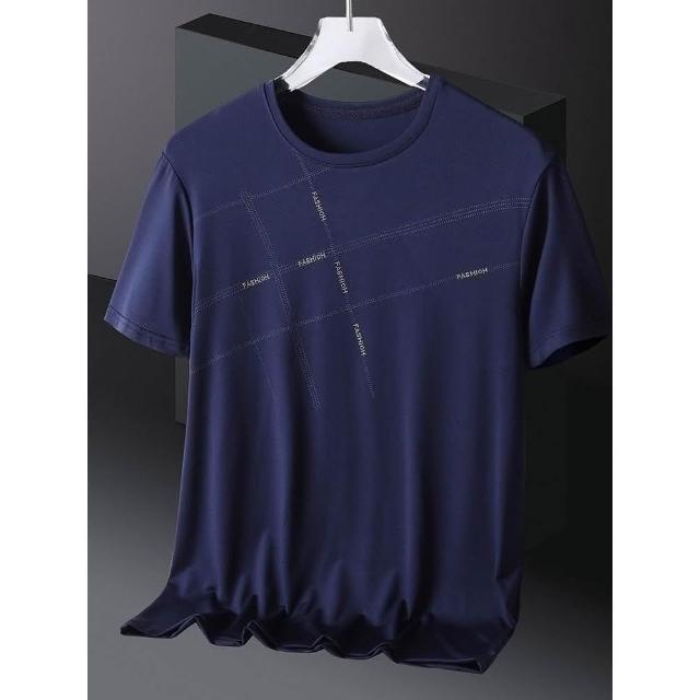 Zycx 大尺碼涼感t恤男短袖t恤休閒圓領短袖上衣寬鬆彈力T恤夏季涼感衣男輕薄透氣上衣冰涼衣夏天衣服休閒上衣男生短袖
