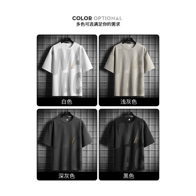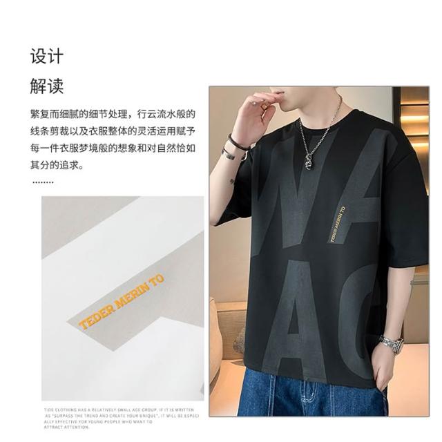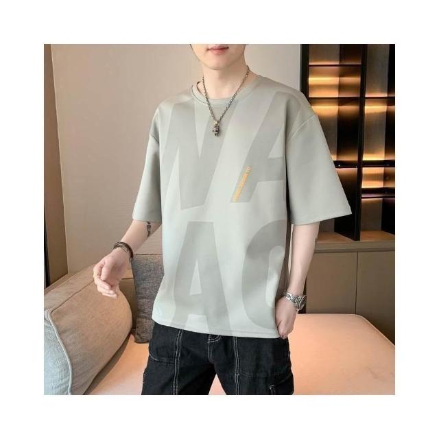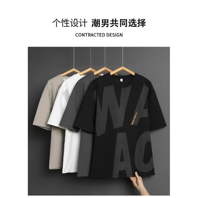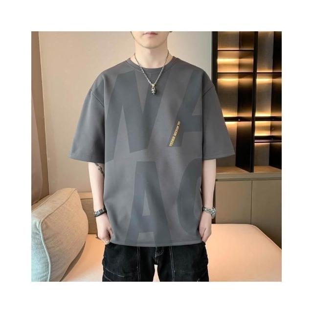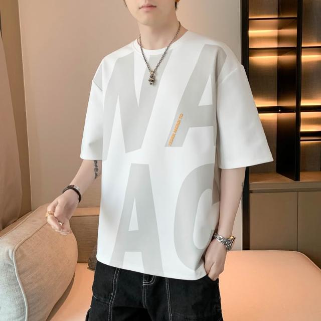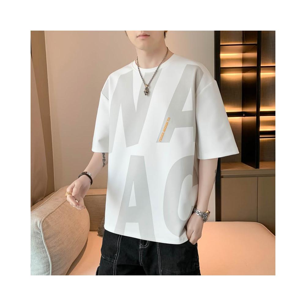 Zycx 大尺碼男生休閒短袖時尚潮流印花t恤韓版短袖夏季圓領上衣休閒百搭上衣簡約短袖上衣落肩寬鬆上衣夏天衣服青少年上衣