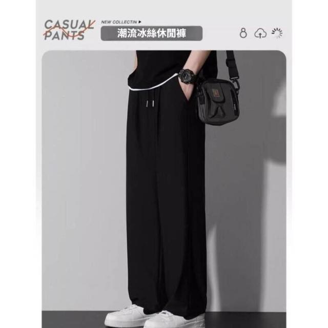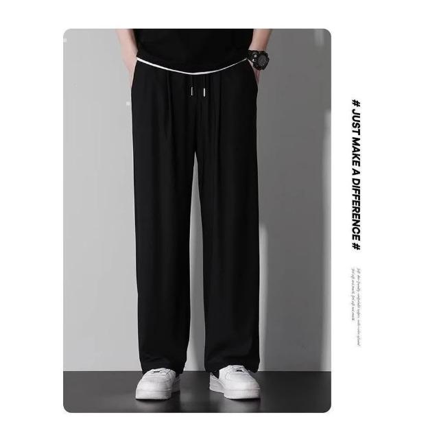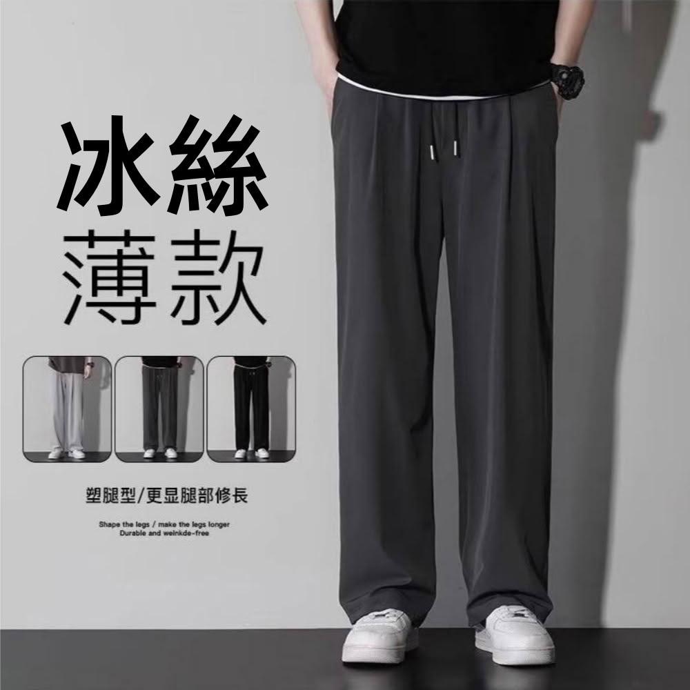 運動褲冰絲直筒休閒褲百搭寬褲夏季男長褲冰涼褲彈力透氣涼感褲青年抽繩直筒工作褲顯瘦戶外徒步登山薄款鬆緊腰夏天大尺碼男生褲子