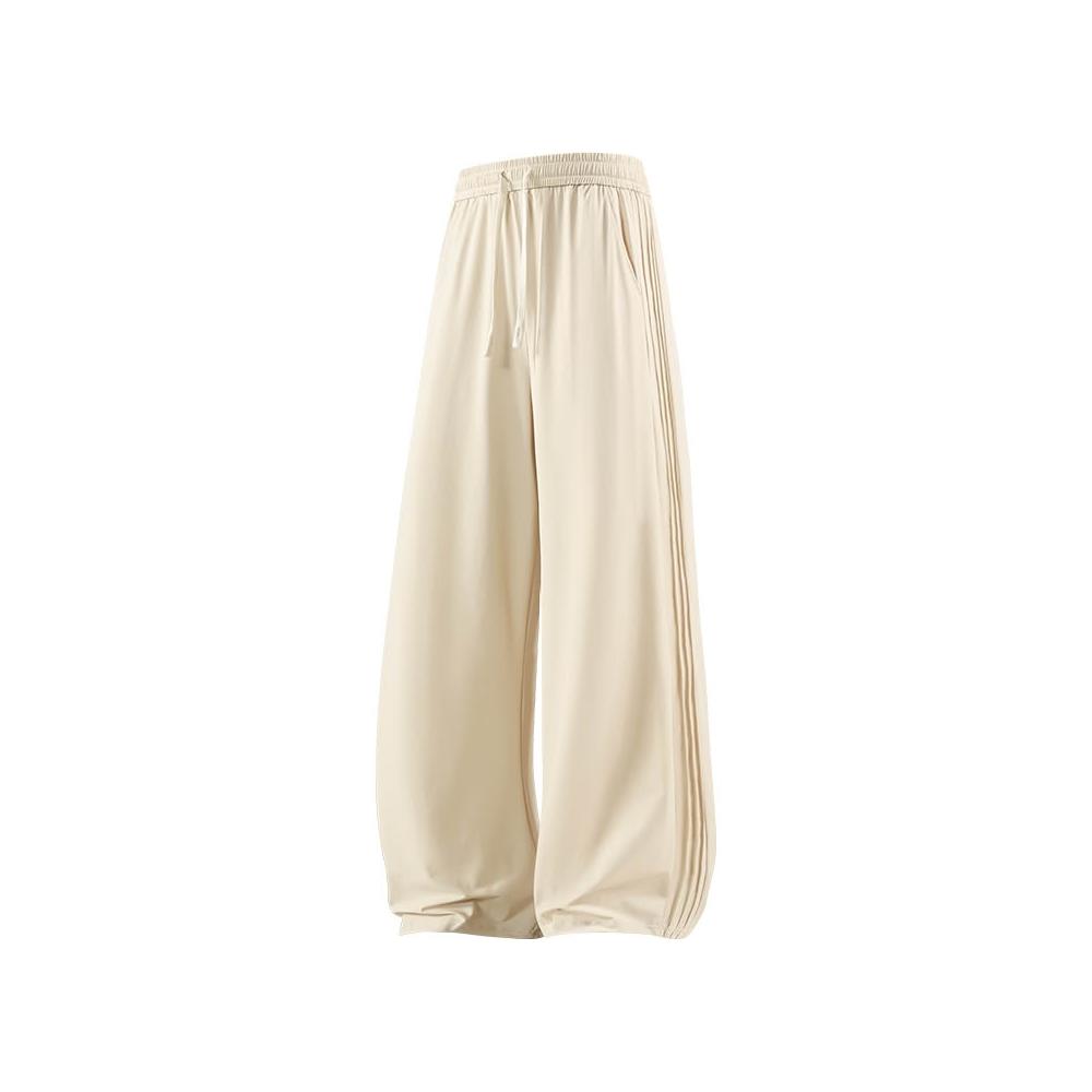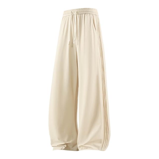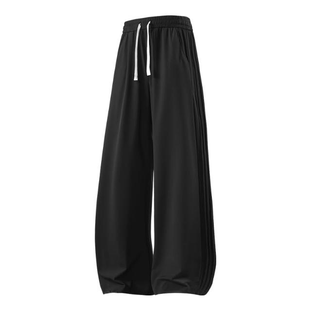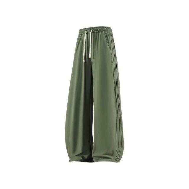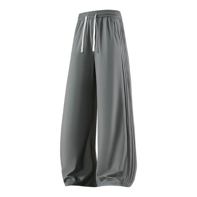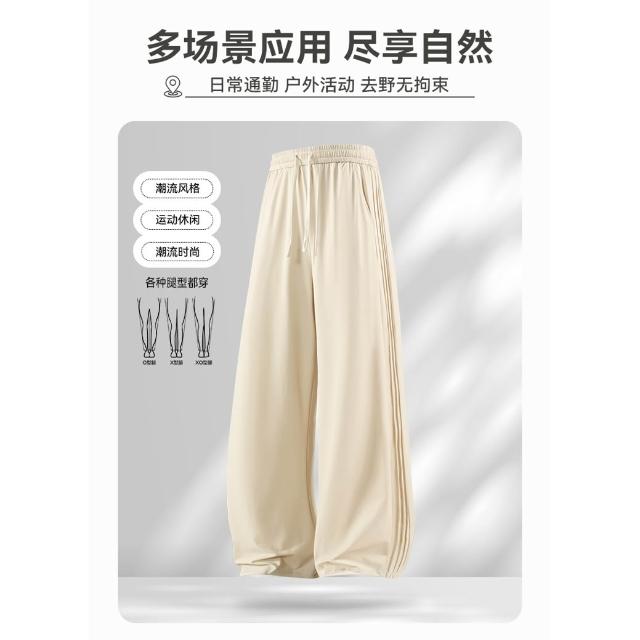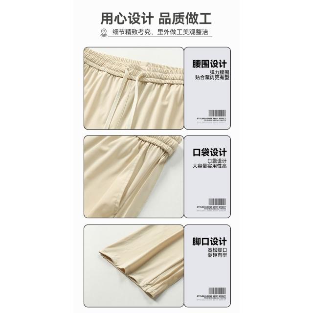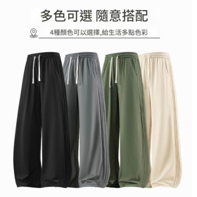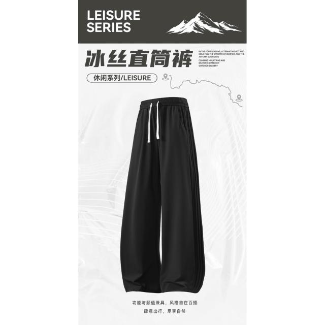 Zycx 冰絲直筒褲男涼感寬褲闊腿長褲休閒百搭長褲冰絲長褲冰涼褲垂墜感長褲男生褲子夏季透氣長褲抽繩長褲寬鬆長褲男褲