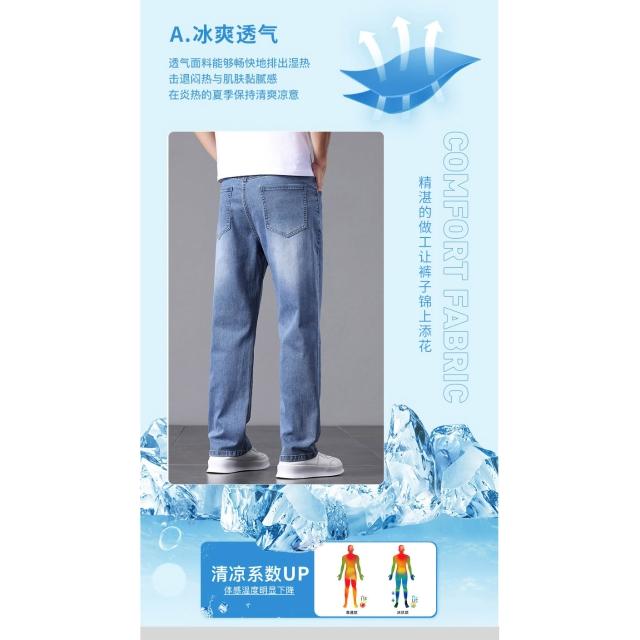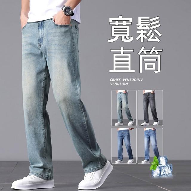 牛仔褲直筒寬鬆男長褲春秋薄牛仔褲透氣涼感運動長褲青年寬褲彈性百搭通勤工作褲垂感大尺碼休閒褲美式復古男裝褲子時尚潮流登山褲