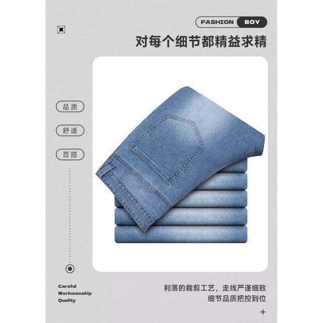 牛仔褲直筒寬鬆男長褲春秋薄牛仔褲透氣涼感運動長褲青年寬褲彈性百搭通勤工作褲垂感大尺碼休閒褲美式復古男裝褲子時尚潮流登山褲