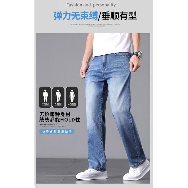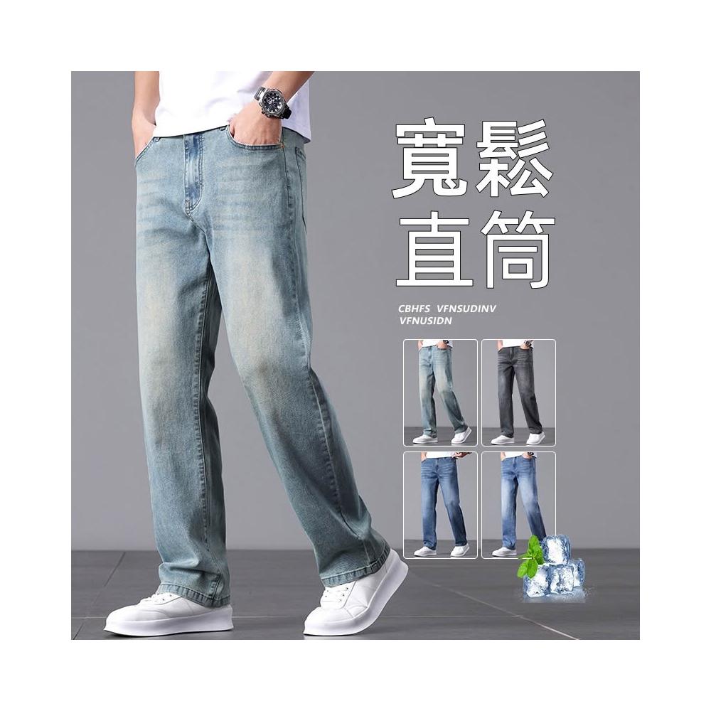 牛仔褲直筒寬鬆男長褲春秋薄牛仔褲透氣涼感運動長褲青年寬褲彈性百搭通勤工作褲垂感大尺碼休閒褲美式復古男裝褲子時尚潮流登山褲