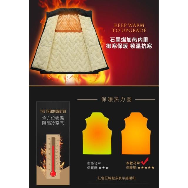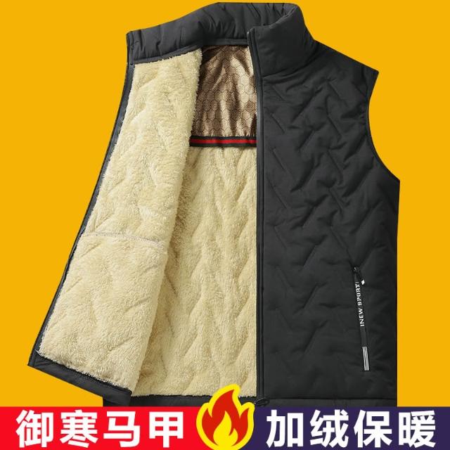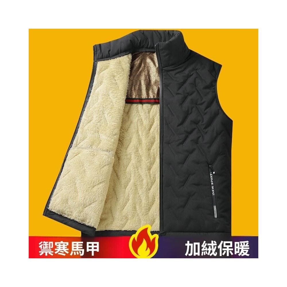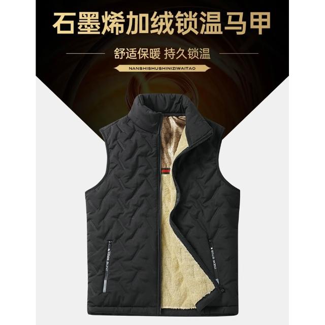 秋冬石墨烯馬甲發熱加絨刷毛背心男防風防潑水防寒加厚保暖背心外套防寒中年爸爸裝短款坎肩背心羊羔絨休閒無袖外套(M-5XL)