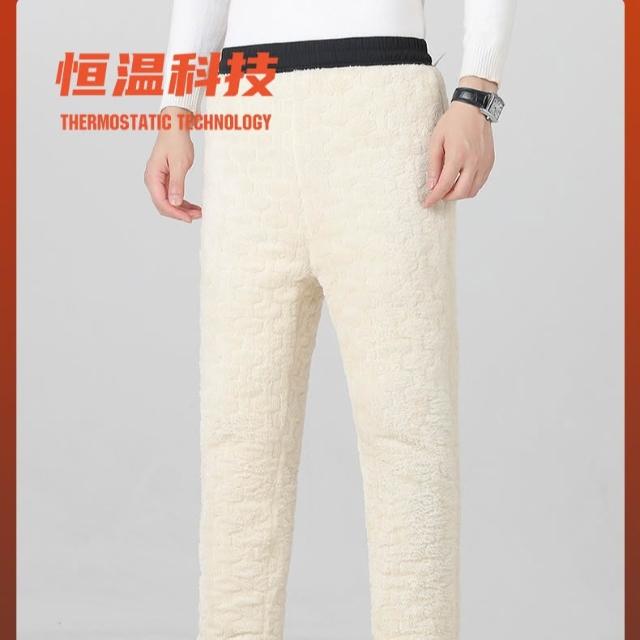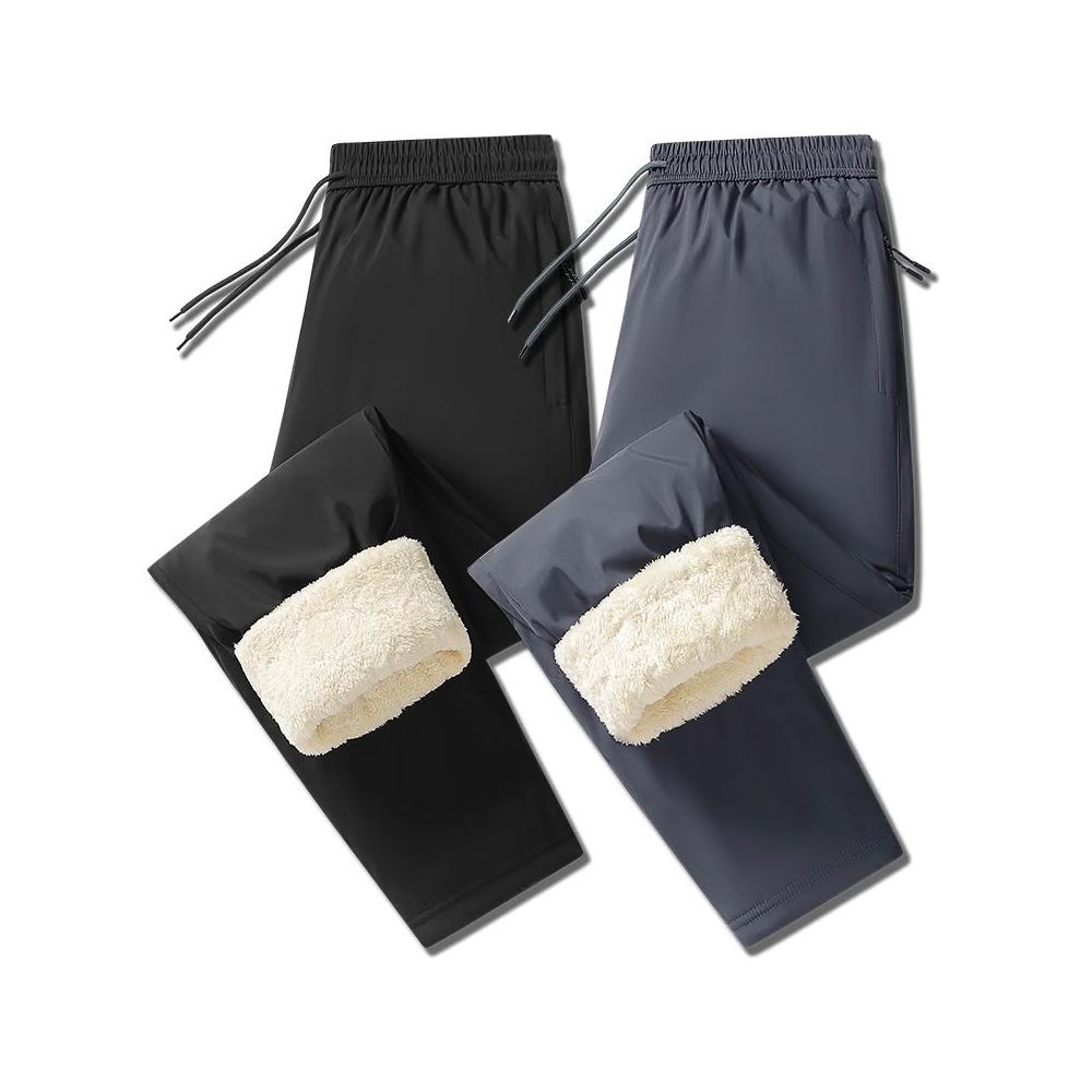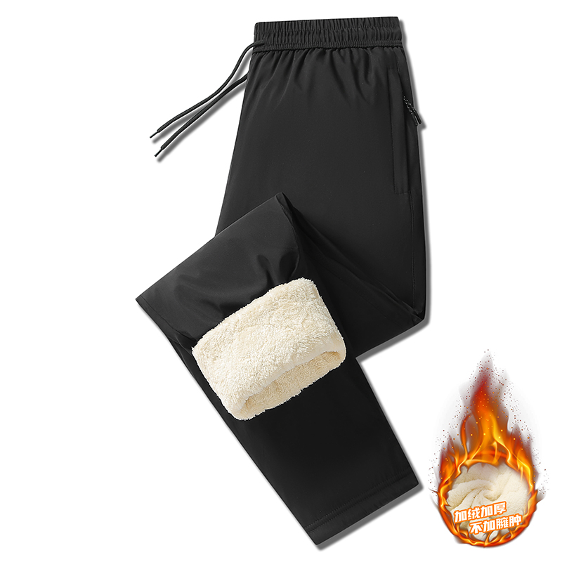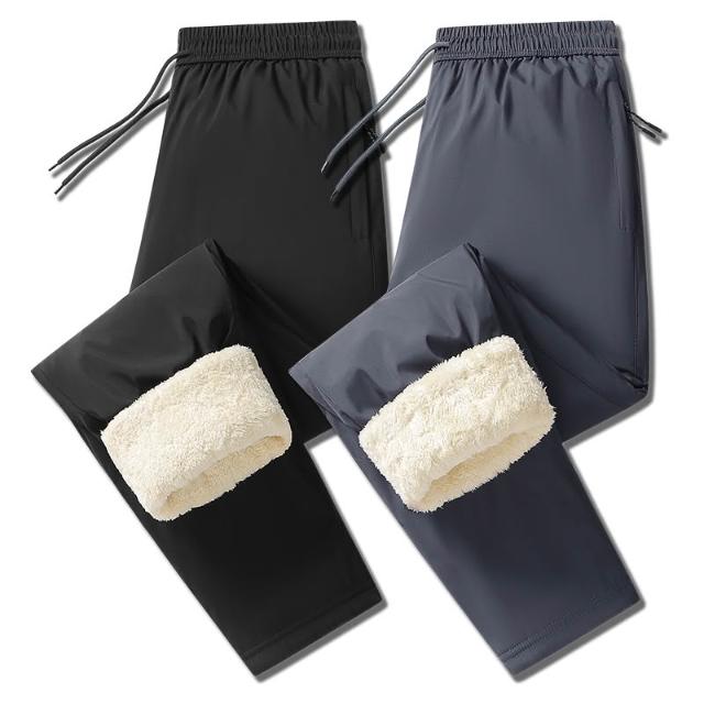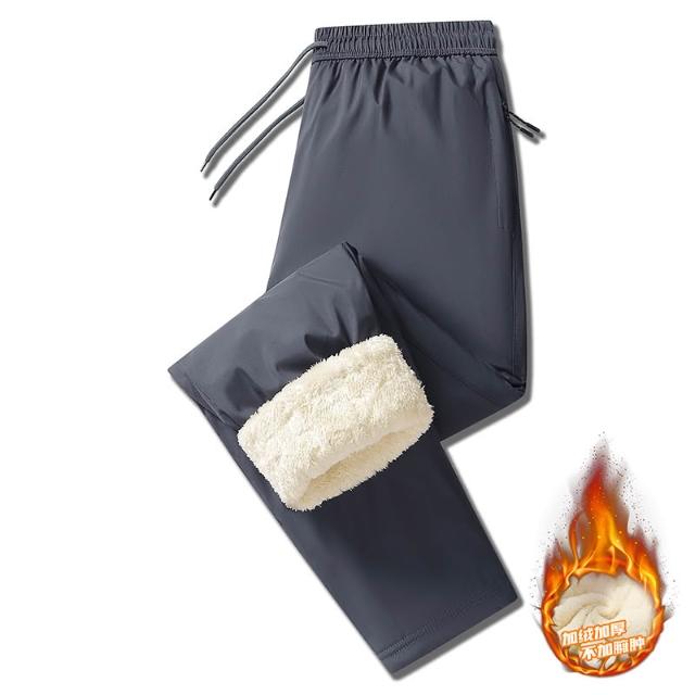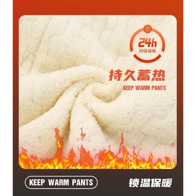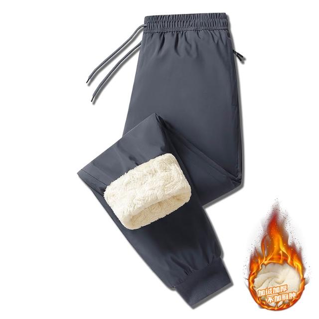 防風保暖長褲羊羔絨褲加絨加厚鬆緊褲腰百搭休閒長褲戶外騎車滑雪登山褲寬鬆直筒防潑水外穿長褲大尺碼工作男長褲